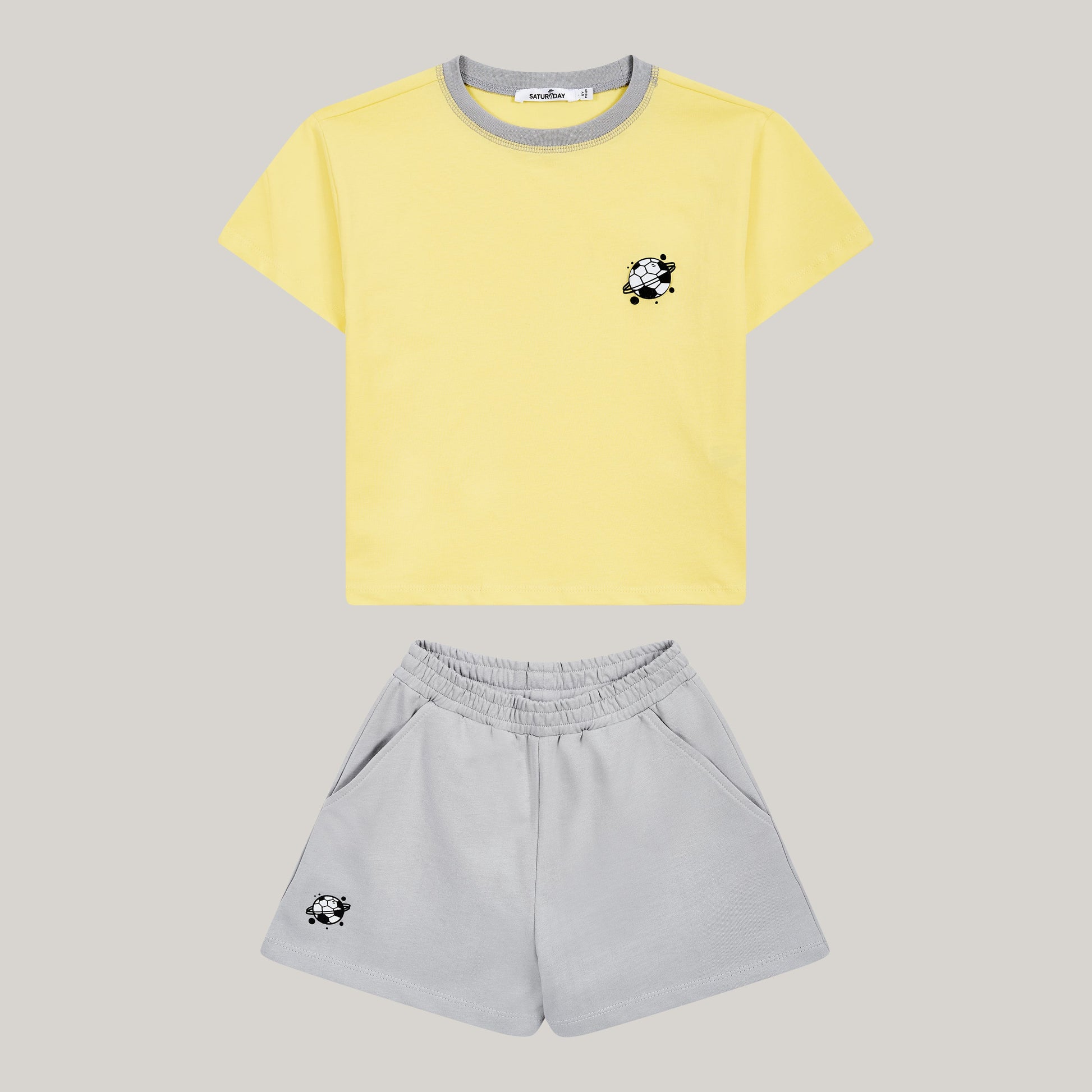 Dieses Twin Set in hellem Gelb und sanftem Hellgrau aus Baumwolle ist das Must-have für kleine Fußballfans, die auf klare Linien und einen dezenten Look setzen.