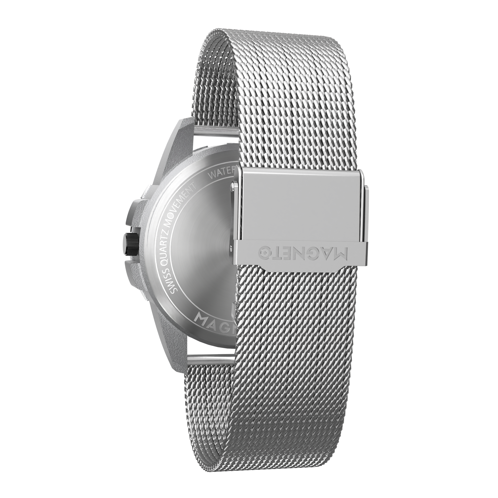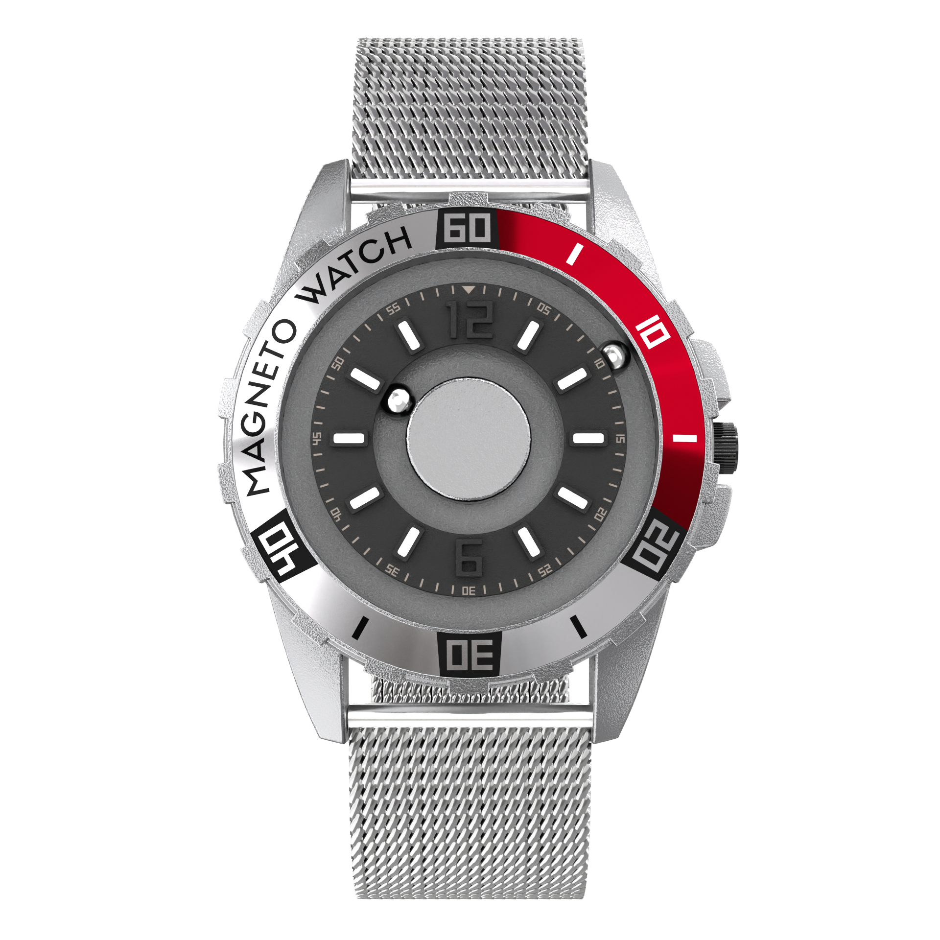 Die Uranus Silver vereint sportliche Dynamik mit moderner Eleganz. Das silberfarbene Gehäuse aus hochwertiger Alloy und die rot-silberne Lünette verleihen der Uhr einen ausdrucksstarken Charakter. Dank der innovativen Magnetzeiger-Technik wird die Zeit auf einzigartige Weise angezeigt. Das stilvolle Milanaisearmband in Silberoptik rundet den Look harmonisch ab. Gehäusedurchmesser: 40 mm, Gehäusehöhe: 13 mm. Perfekt für alle, die sportlichen Stil und technische Innovation lieben.