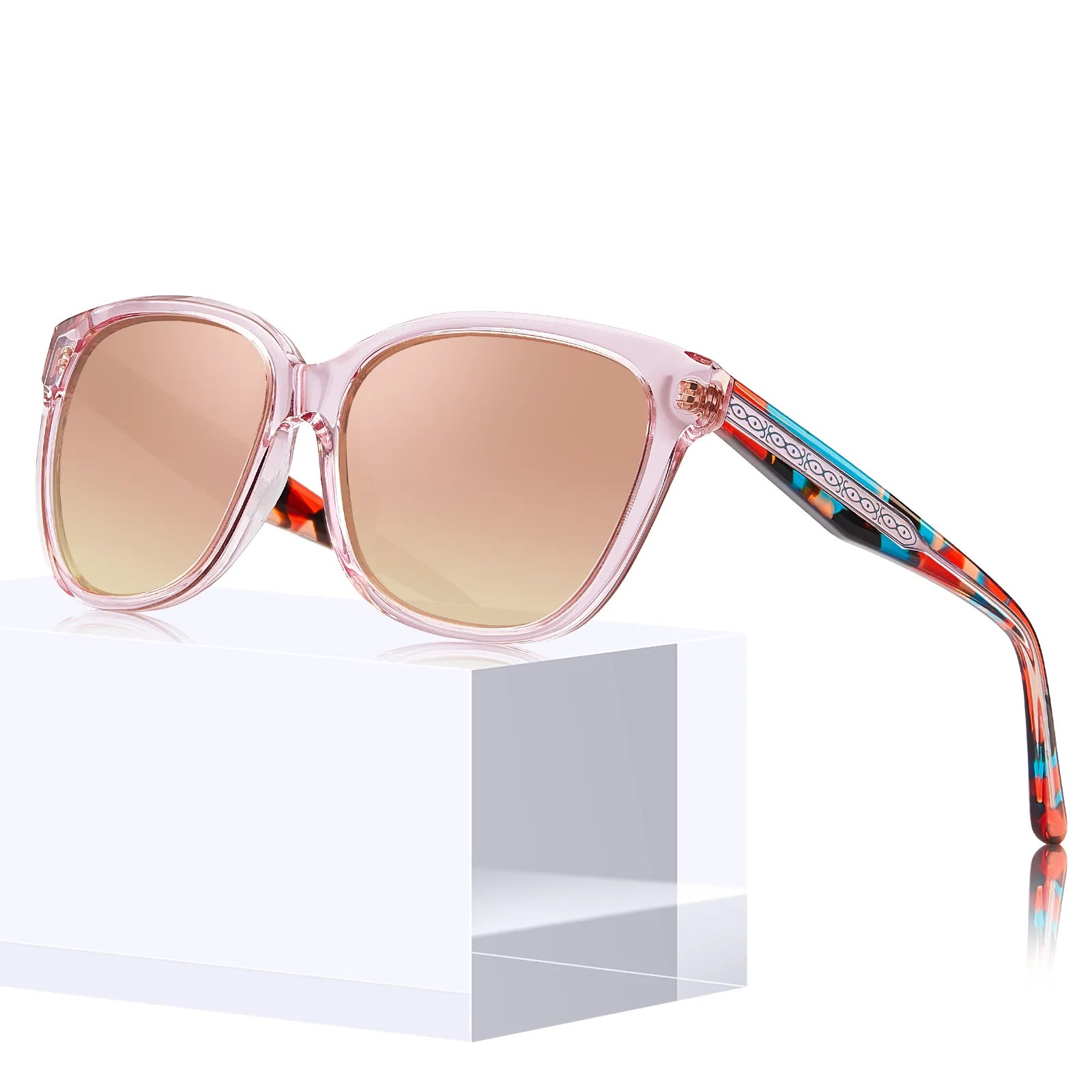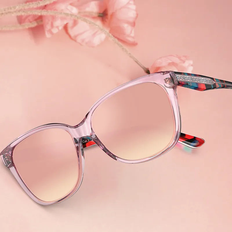 - Higher-Quality Acetate Materials - You can enjoy higher-quality acetate materials for an affordable price. Our pink sunglasses are made of hand-polished acetate imported from Italy. Compared to cheap plastic frames that peel easily, the color of our glossy frames is naturally embedded in the material, so its color brightness remains impeccable over time. Thus, it avoids fading, peeling, yellowing, or other forms of discoloration. The hypoallergenic acetate is also resistant to cosmetics and sweat corrosion.