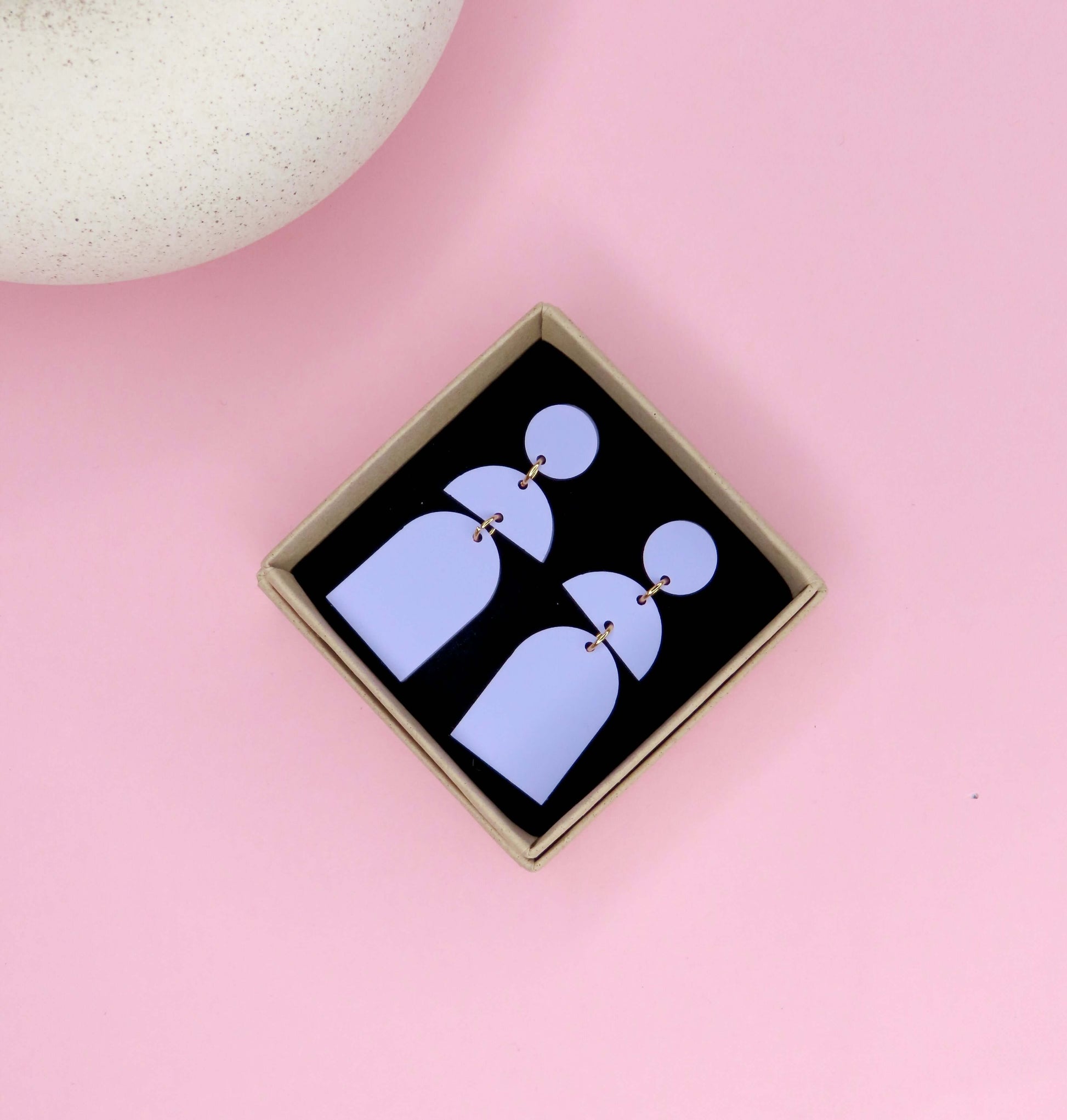 Unsere Ohrringe bringen dich zum Strahlen: Die feine Fliederviolett-Nuance wirkt zugleich dezent und besonders – perfekt, wenn du Farbe tragen willst, ohne zu übertreiben.