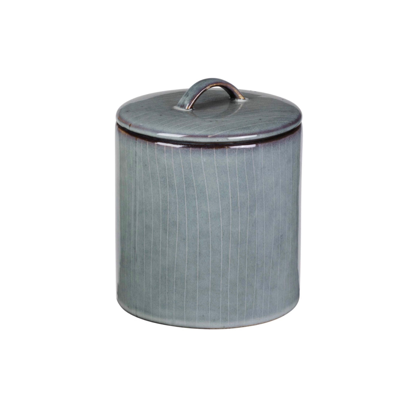 Vorratsdose der Serie Nordic Sea aus Steingut. Jedes Teil fällt in Farbe und Struktur etwas unterschiedlich aus. Unebenheiten unter der Lasur sind gewollt und Bestandteil des nordischen Designs. Weitere Teile der Serie werden ebenfalls angeboten. Für den Geschirrspüler und die Mikrowelle geeignet.