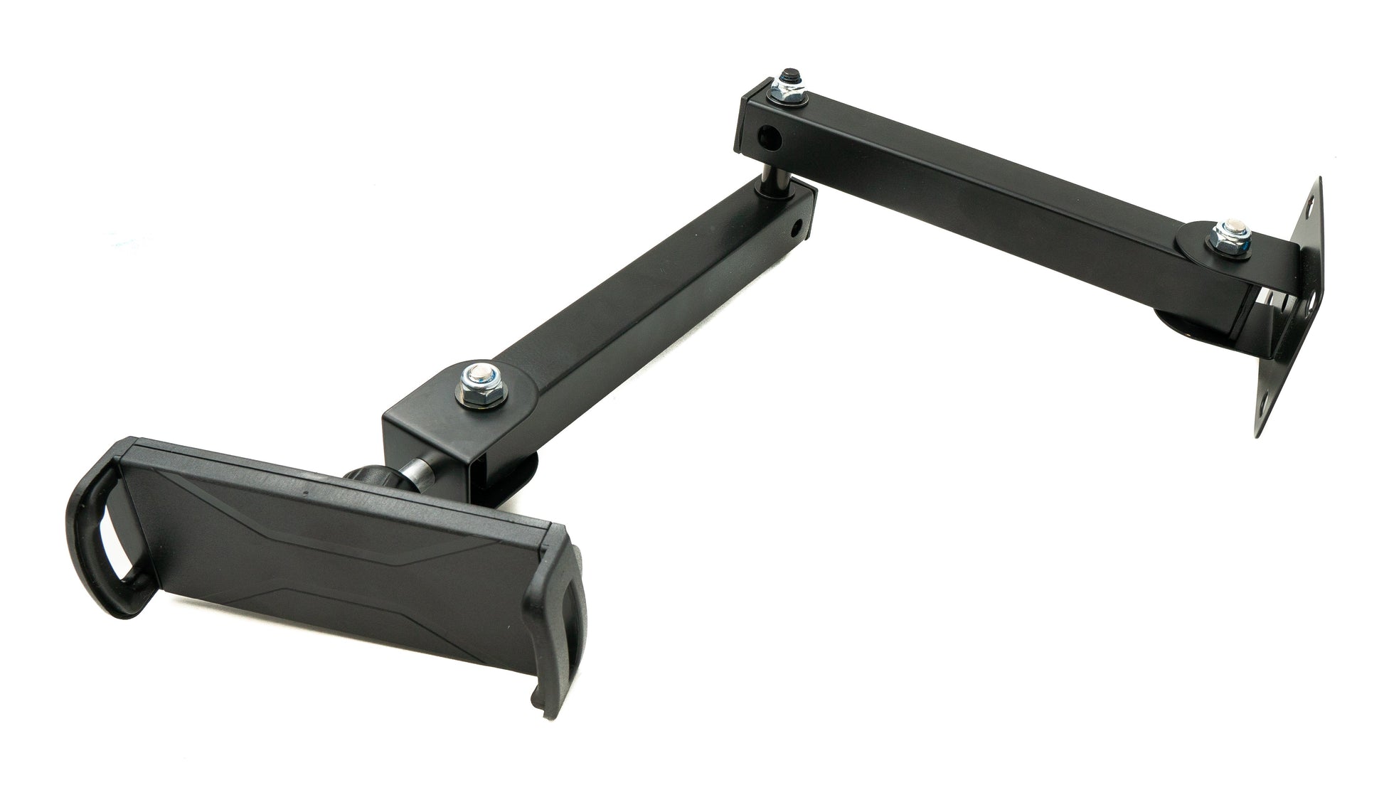 Lieferumfang: Arme aus Aluminium, Tablet-Klammer aus Kunststoff, Montagezubehör (Dübel, Schrauben, Unterlegscheiben, Schlüssel)