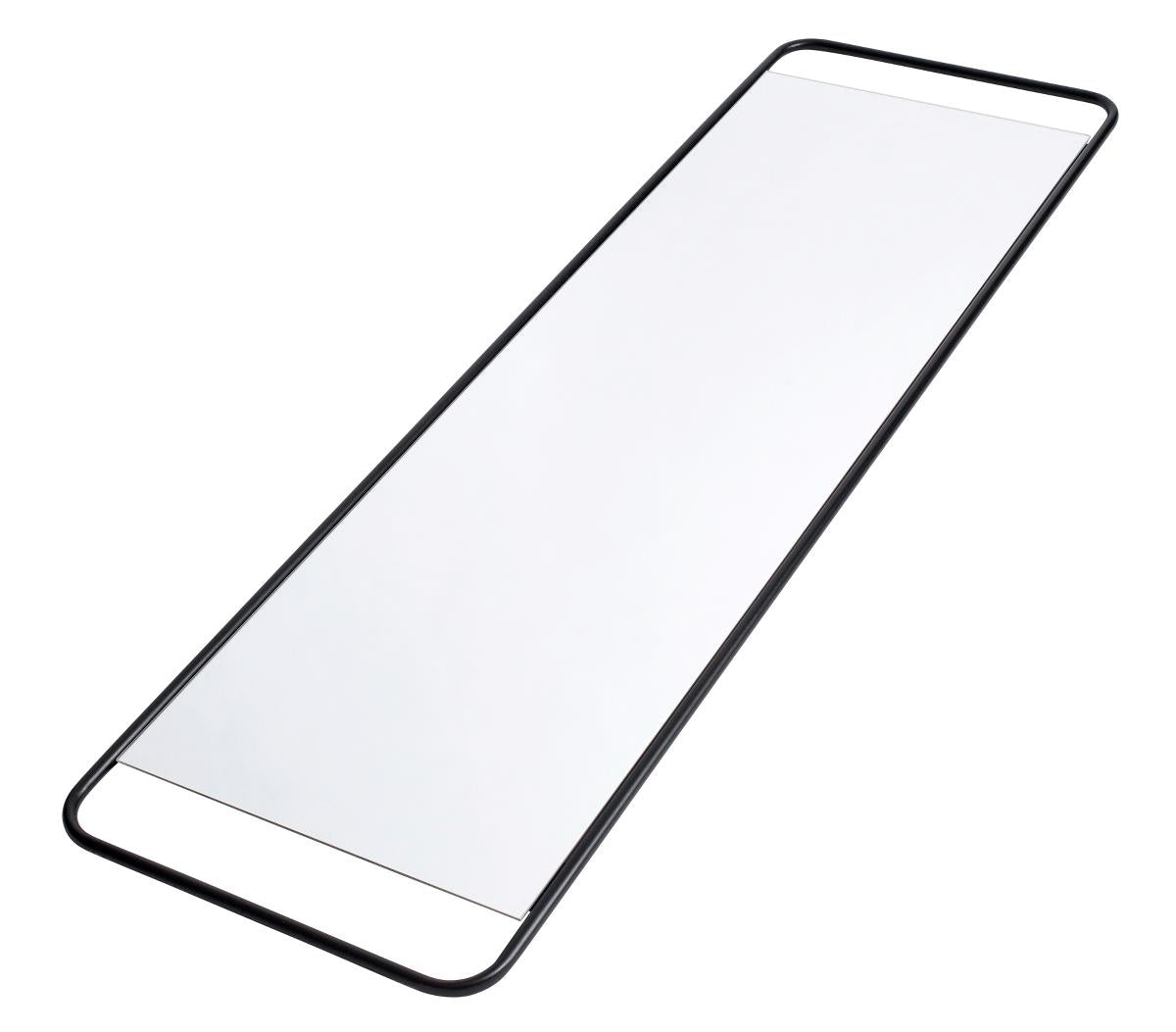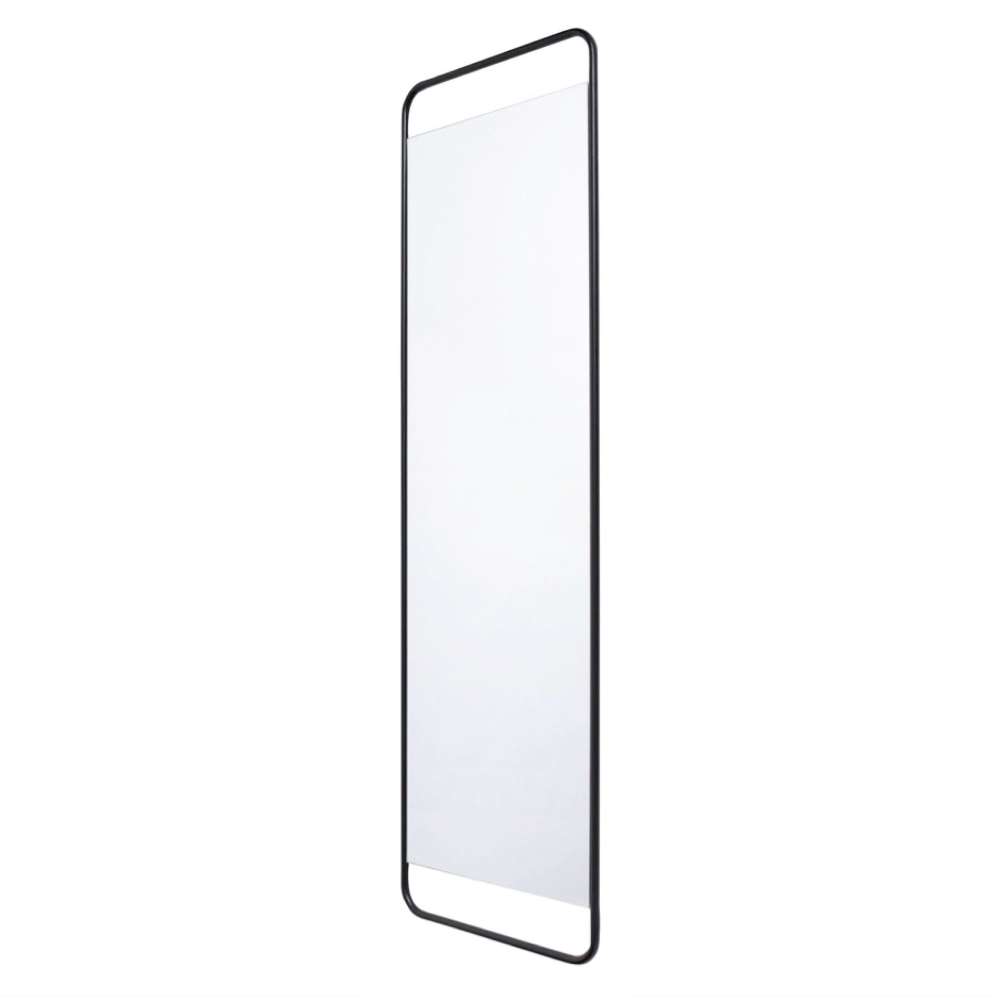 Schlichter Wandspiegel mit Rahmen aus pulverbeschichteten, geschwärzten Eisenrohren. Vielseitig einsetzbar im Flur, Bad oder Schlafzimmer. Minimalistisches Design in hochwertiger Verarbeitung. Sowohl horizontal als auch vertikal aufzuhängen.