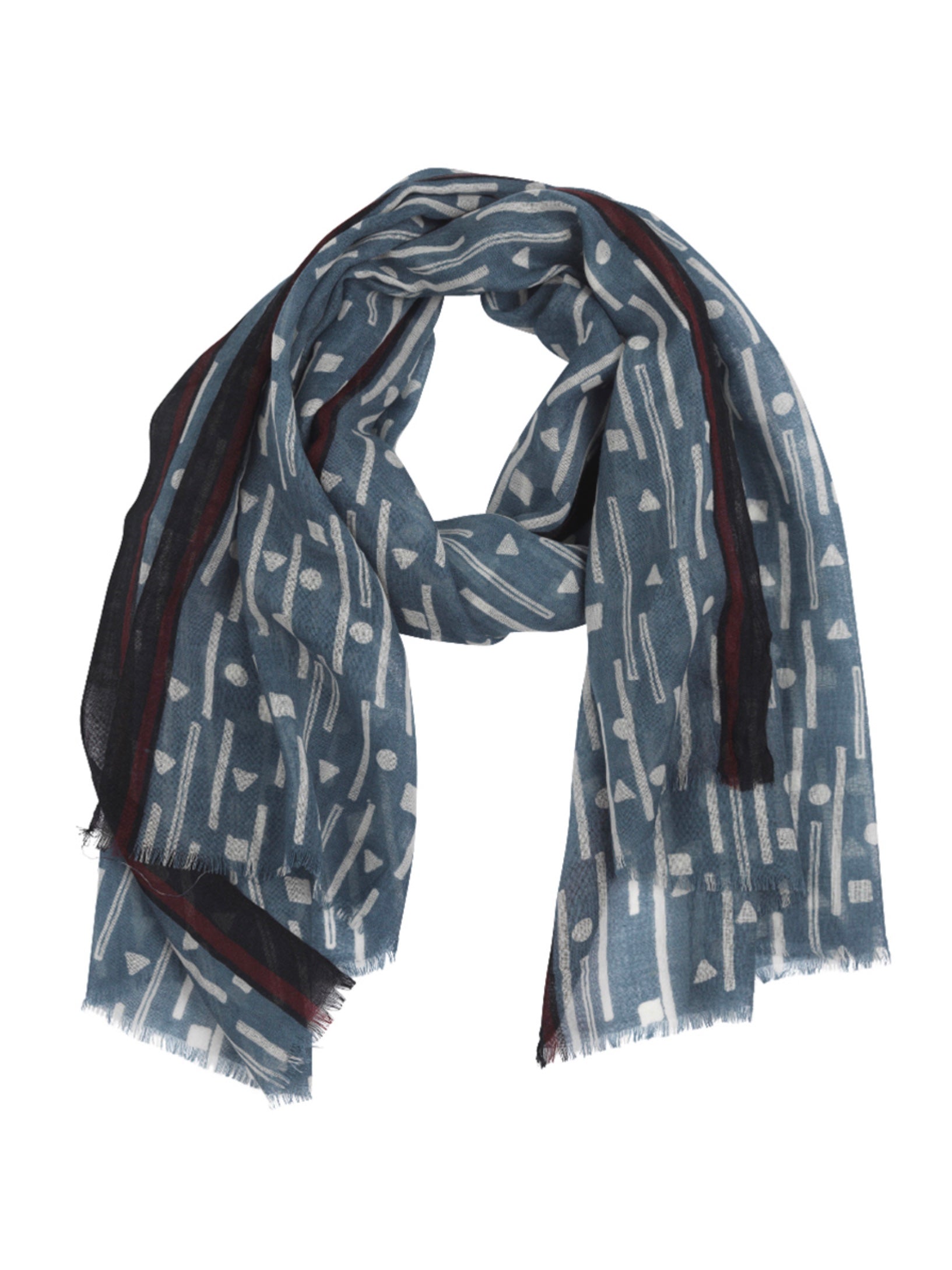 Edler Modeschal aus reiner softer Wolle mit dezentem Grafikmuster und dunklen Bordüren. Er lässt sich ideal kombinieren.