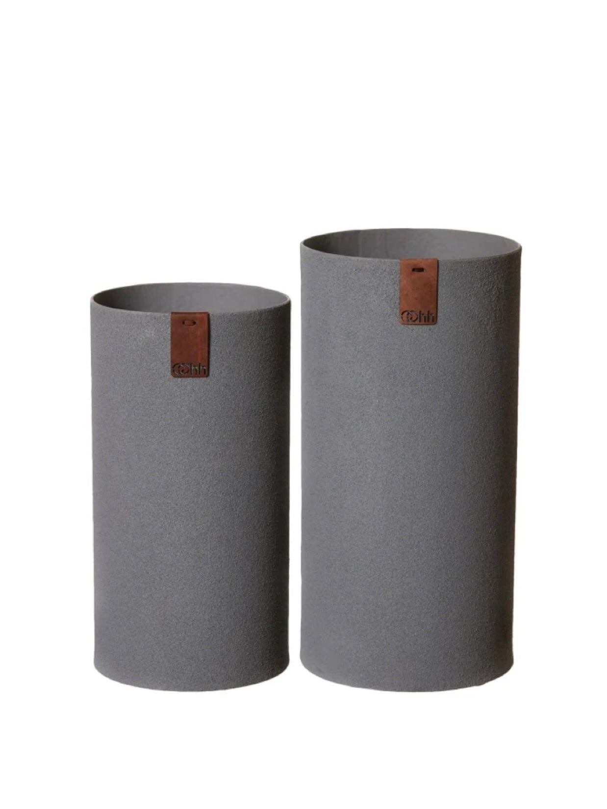 Schlichte Zylindervase aus recyceltem Papier. Die Oberfläche ist sandgestrahlt und hat dadurch eine unregelmäßig körnige Struktur. Innen mit einer wasserfesten Beschichtung versehen. Die minimalistisch anmutende Vase kann auf dem Tisch oder als Bodenvase genutzt werden. Ideal auch als Schirmständer zu nutzen.